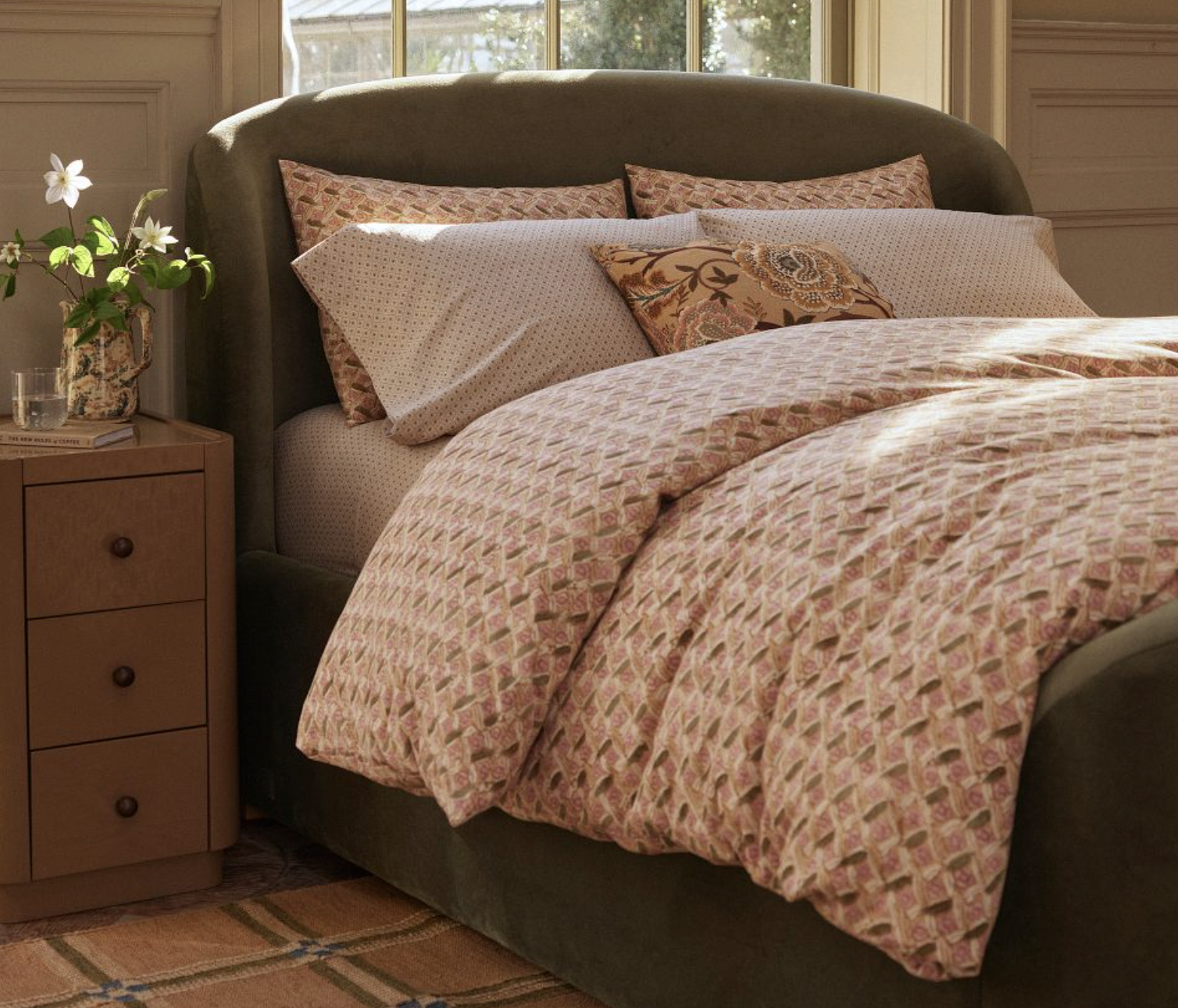 Another collaboration I'm genuinely excited about is the partnership between Pierce & Ward and West Elm. I've always been a huge fan of Pierce & Ward—their painterly palettes bring unprecedented warmth and layered saturation to any interior. Throw these curved-back dining chairs around your table, and you'll feel like you just got a completely redesigned dining room. Or consider a pair of these sweet little bedside tables for the guest room—they're absolutely perfect in scale and size for small spaces. And here's my favorite design trick: replace those recessed can lights with several of these pendants across your ceiling to create an elevated, layered interior.